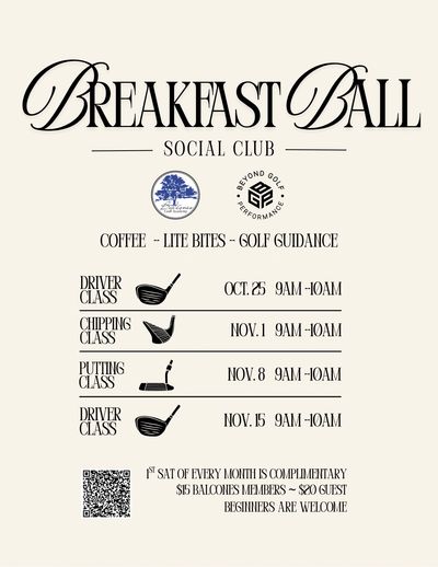 With a focus on the Body, the Mind and the Technique Coach Francis and the Balcones Golf Academy team of instructors teach the golf fundamentals in this fun and engaging class. Come for the coffee, stay for the golf tips.
